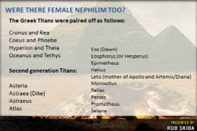 in Greek mythology were equivalent to first-generation Nephilim. They were also paired-up: male and female.