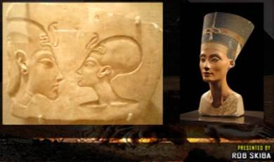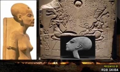 to the left, is a profile of Nefertiti, and to the right is a representation of